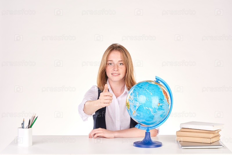 Школьница с глобусом