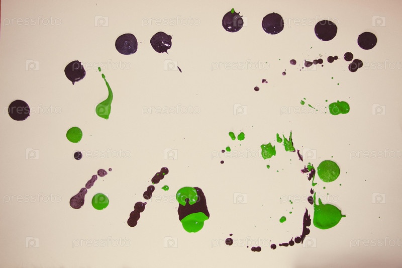 Зеленые и черные капли краски на белом фоне