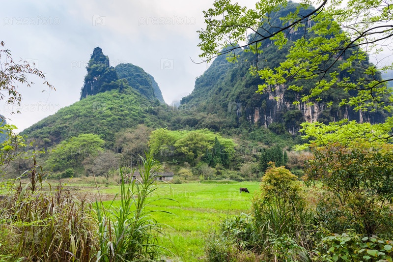 Зеленый луг возле карстовой горы Яншо