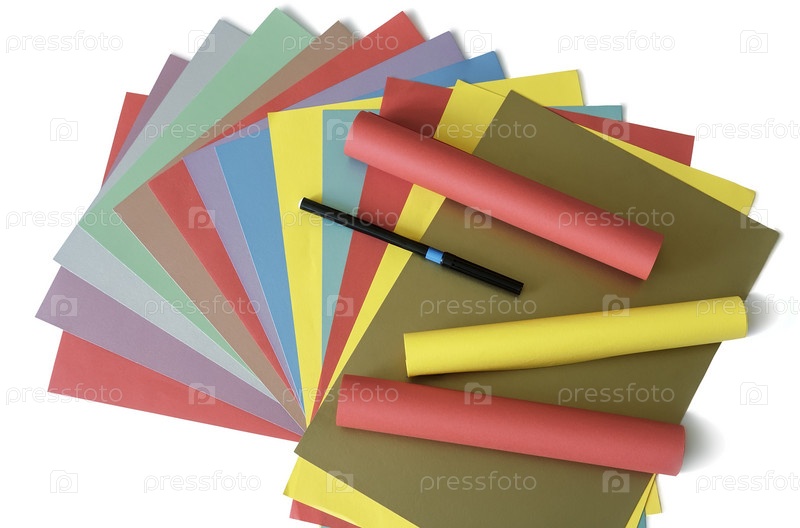 Листы цветной бумаги на белом фоне