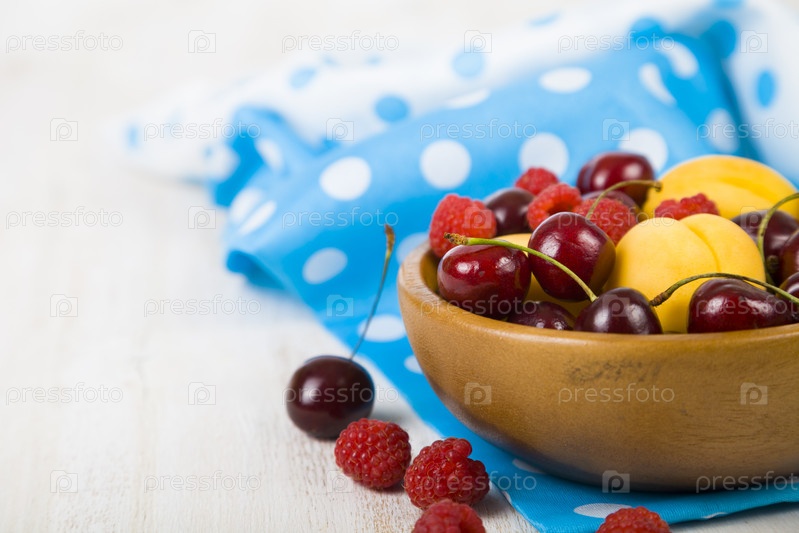 Спелые ягоды и фрукты в тарелке