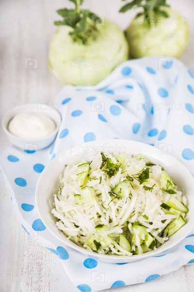 Салат с кольраби, огурцами и укропом