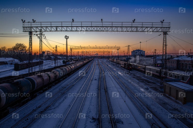 Зимний вечер над путями на станции Пермь