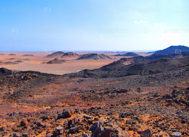 Фантастический пейзаж пустыни с невысокими горами