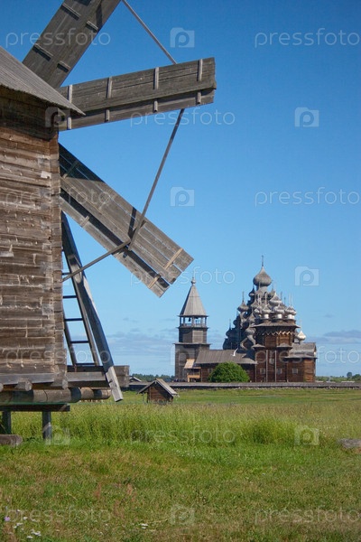 Деревянная церковь на острове Кижи на Онежском озере, Россия
