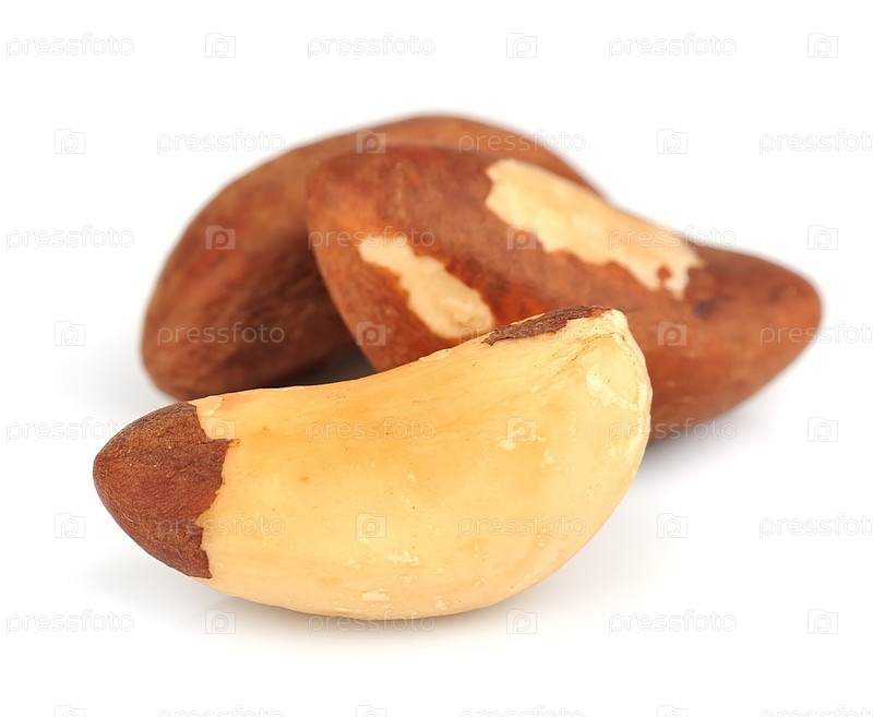 Бразильские орехи крупным планом на белом фоне