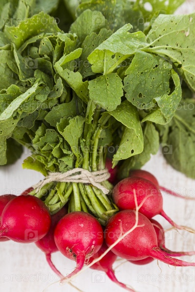 Спелые красный редис с листьями