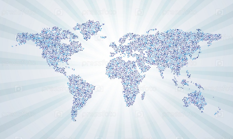 Карта мира, состоящая из нотных знаков, на фоне лучей