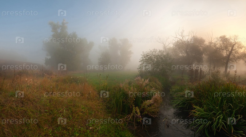 Панорама реки в тумане