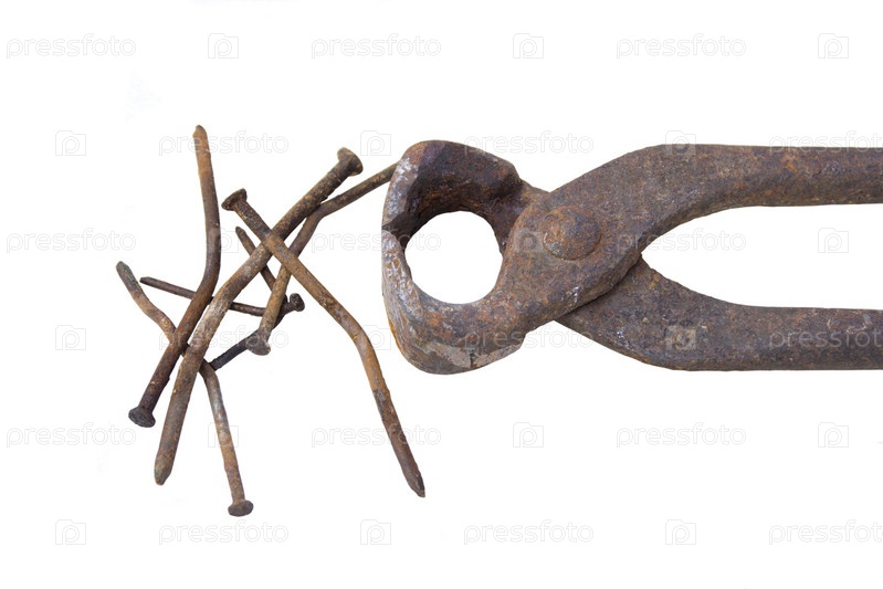 Старые ржавые клещи и гвозди