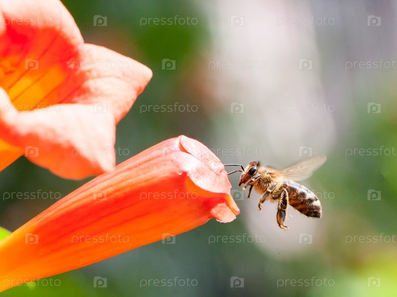 Пчела собирает пыльцу с цветка
