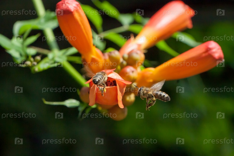 Пчела собирает пыльцу с цветка