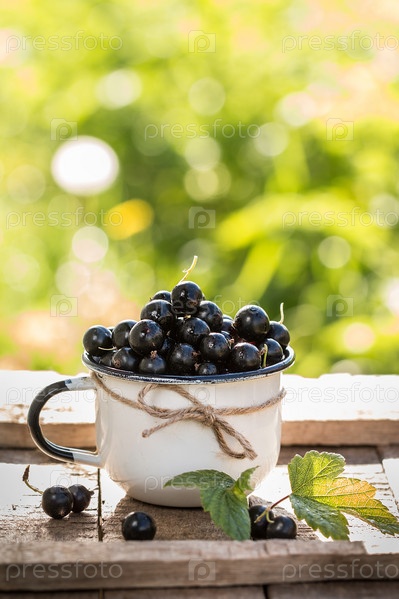 Свежая черная смородина в кружке
