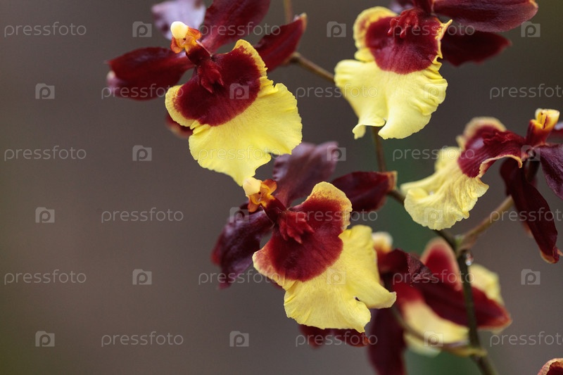 Желтые и бордовые орхидеи