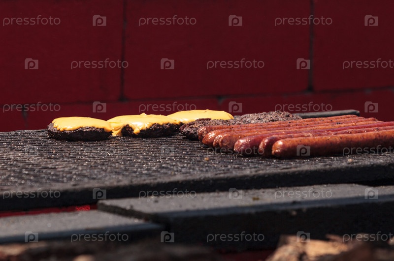 Колбаса и гамбургеры на барбекю