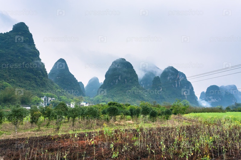 Сады рядом с карстовой горой в Яншо