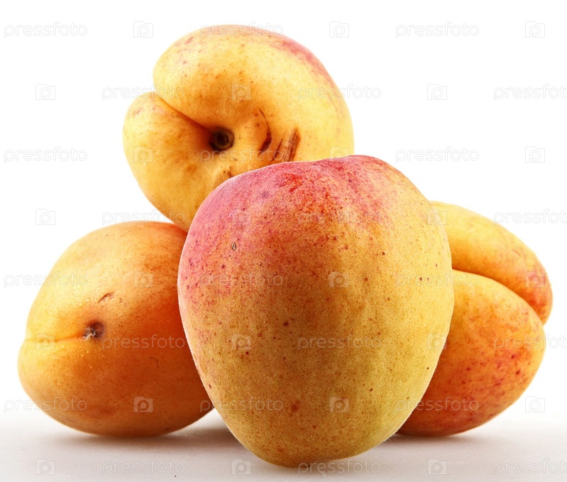 Свежие абрикосы на белом фоне