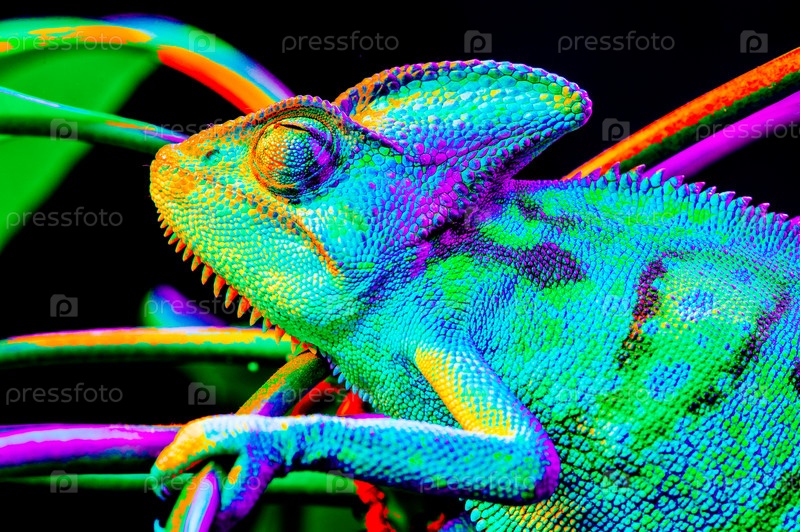 Хамелеон на черном фоне