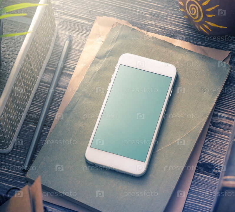 Макет белого смартфона на столе