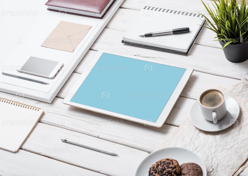 Макет планшетного ПК на деревянном столе