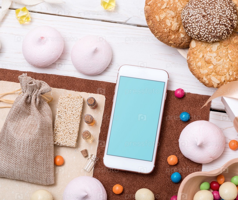 Смартфон среди сладостей