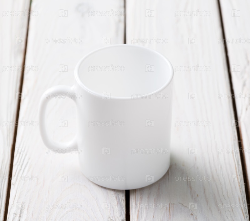 Белая чашка на деревянном столе