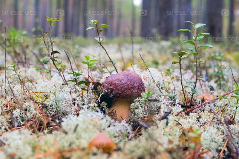 Белый гриб на лесной поляне