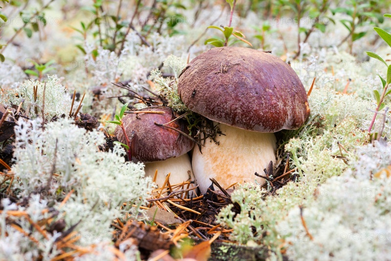 Два белых гриба во мху