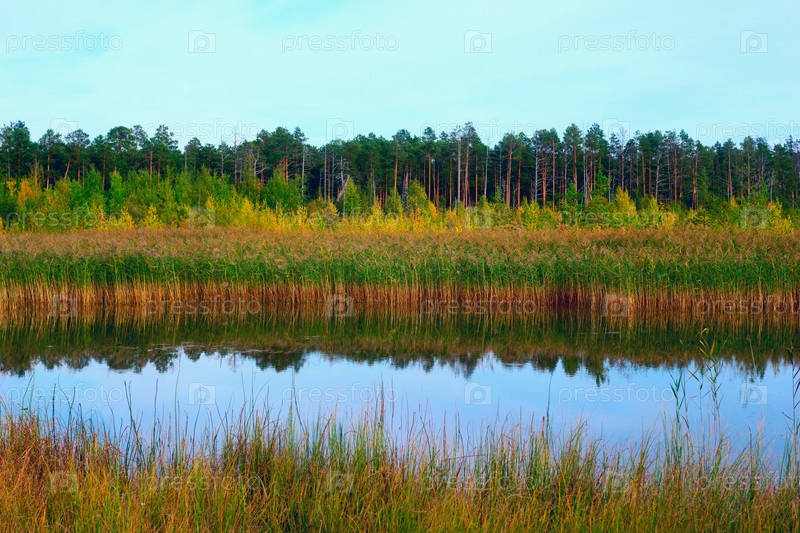 Осенний пейзаж с отражением в воде. Сибирь