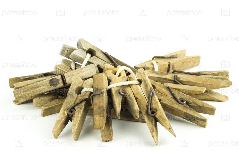 Деревянные прищепки на белом фоне