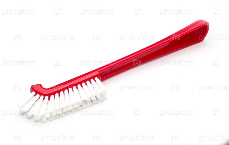 Красная пластиковая кисть на белом фоне