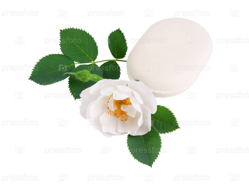 Натуральное мыло с цветком розы, изолированное на белом фоне