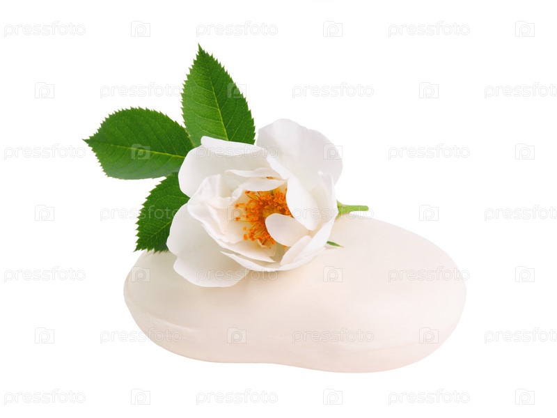Натуральное мыло с цветком розы, изолированное на белом фоне
