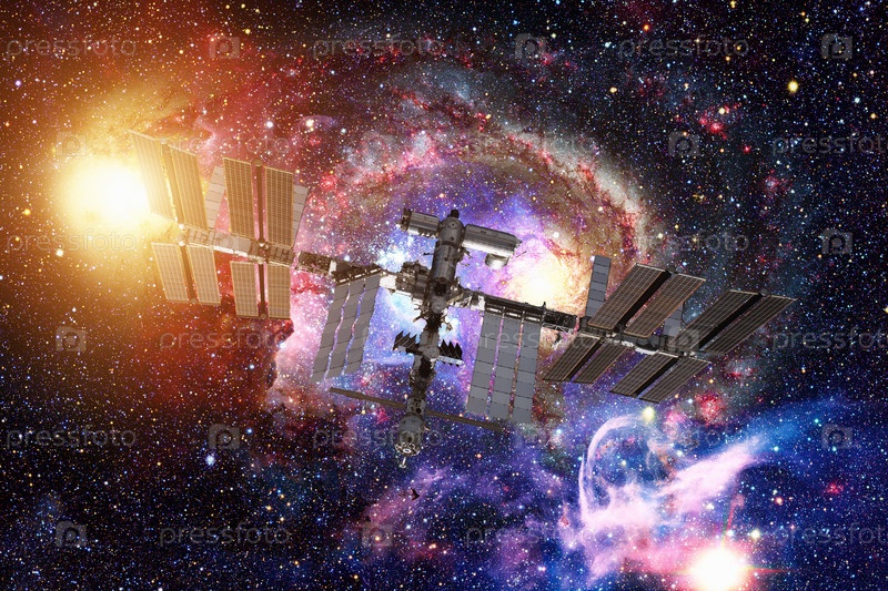 Международная космическая станция над галактикой
