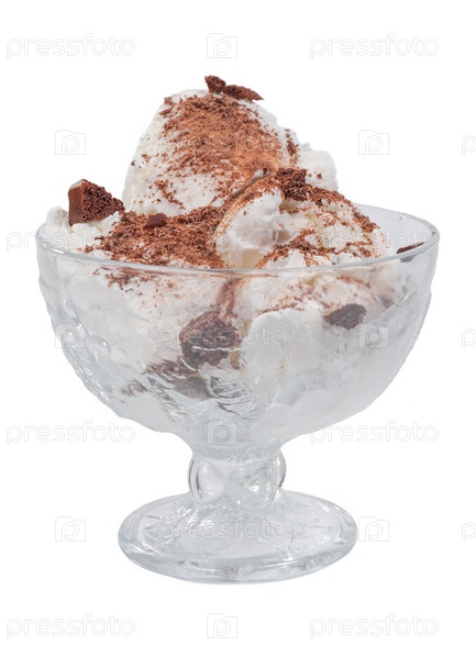 Мороженое с шоколадом в вазе, изолированное на белом фоне