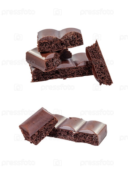 Дольки темного шоколада, изолированные на белом фоне. Набор