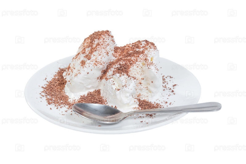 Мороженое с шоколадом на тарелке, изолированное на белом фоне