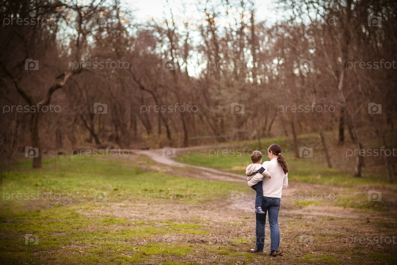 Молодая мать с сыном в осеннем парке
