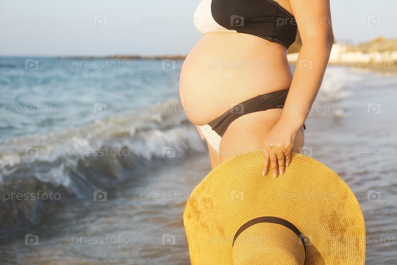 Молодая беременная женщина на пляже летом