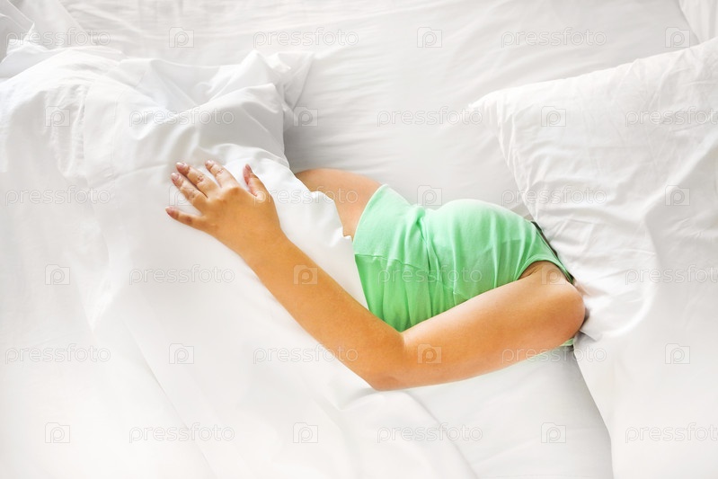 Молодая беременная женщина в постели