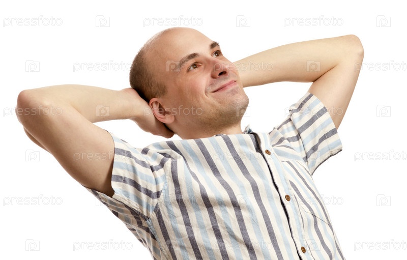 Счастливый мужчина отдыхает с руками за головой