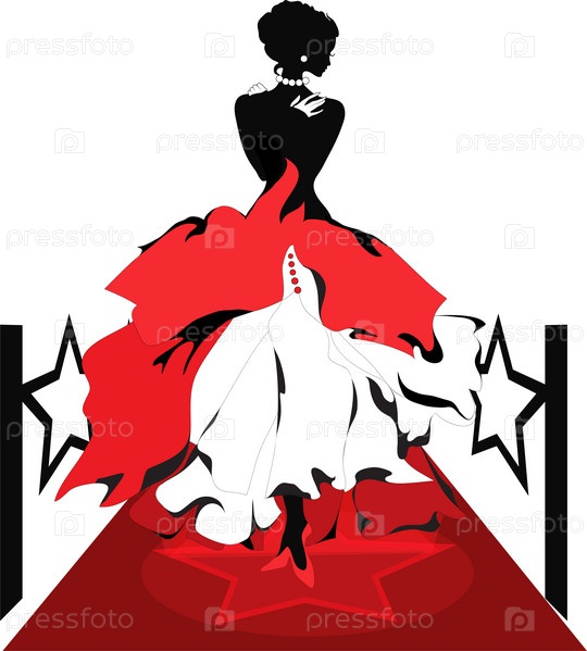 Силуэт женщины на красной ковровой дорожке в свете прожектора