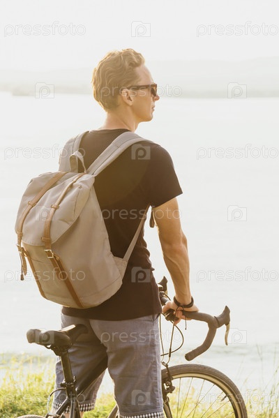 Парень с велосипедом на открытом воздухе