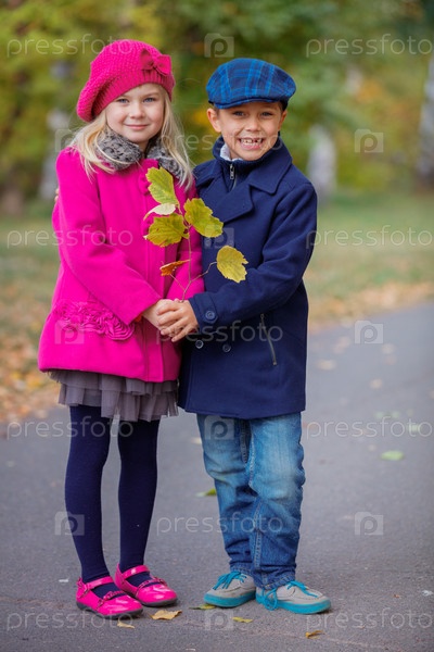 Счастливые дети в осеннем парке
