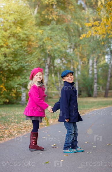Счастливые дети в осеннем парке