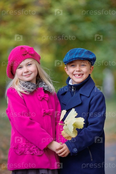 Счастливые дети в осеннем парке