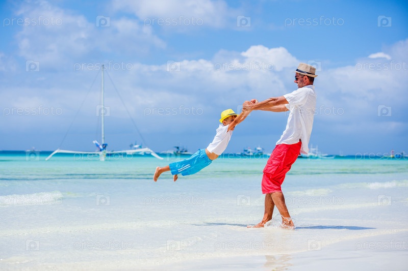 Отец и сын на пляже