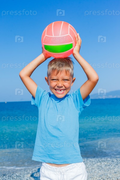 Мальчик играет в мяч на пляже
