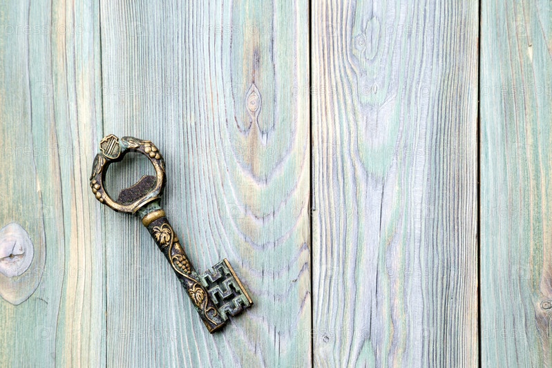 Древний металлический ключ на деревянном фоне