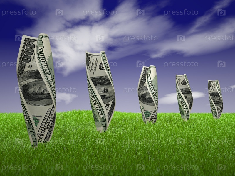 Долларовые купюры на траве